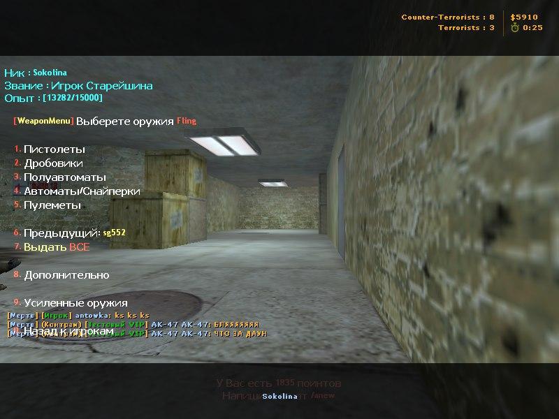 • Можно выдать ВСЕ, прям все оружия что есть в Counter-Strike 1.6, это забавно ;)