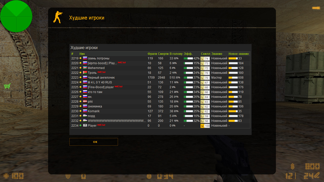 - Новый игрок. Отобразит новых игроков, которые отыграли меньше часа (настраивается)