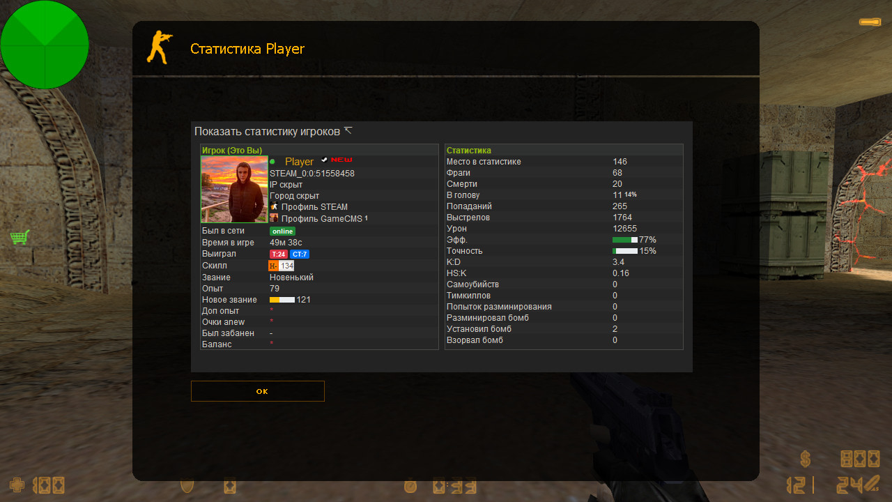 - Эффективность, K:D, процент хэдшотов и другие, просто смотрите config.php