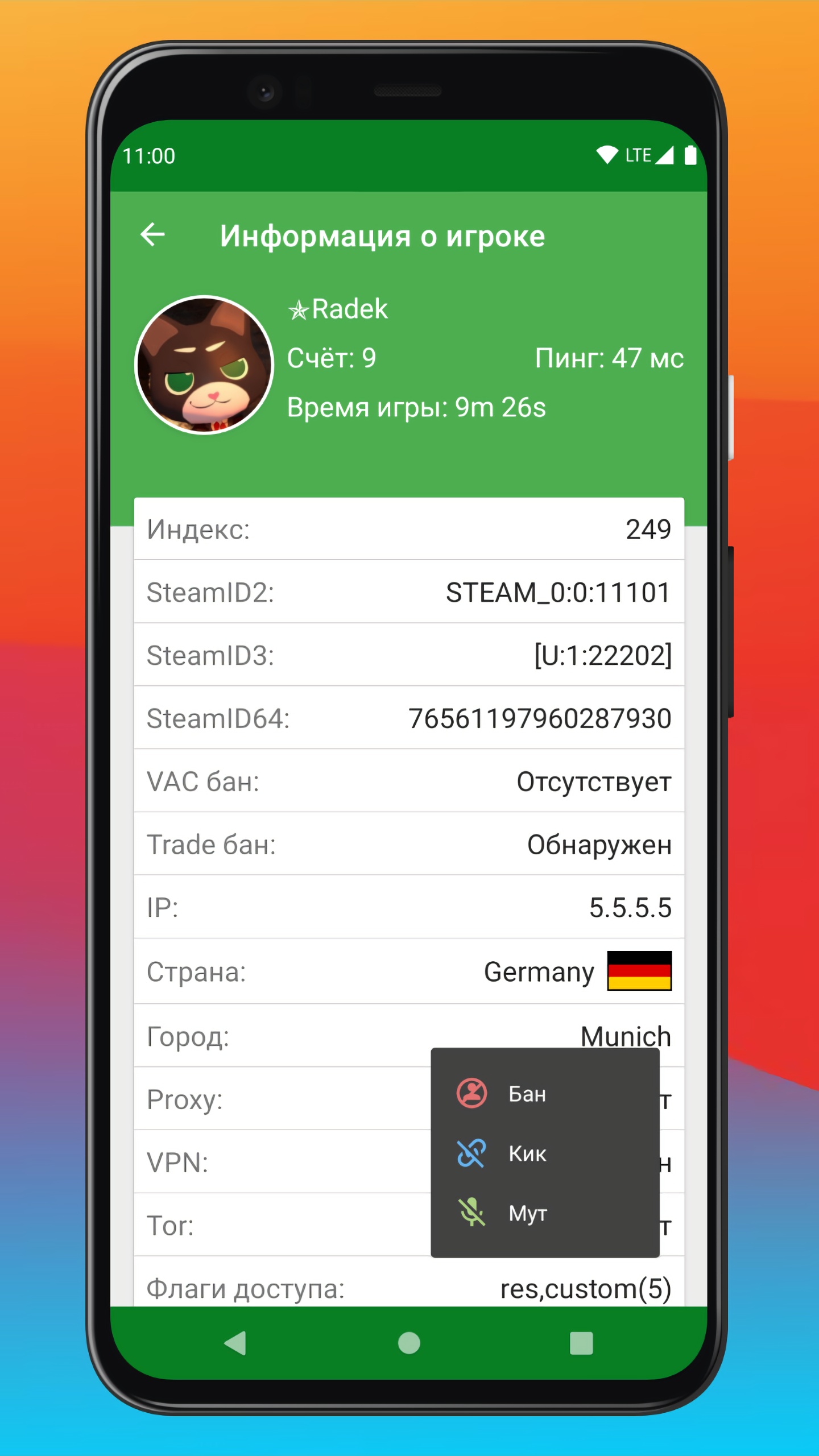 • Бан, кик и мут игроков