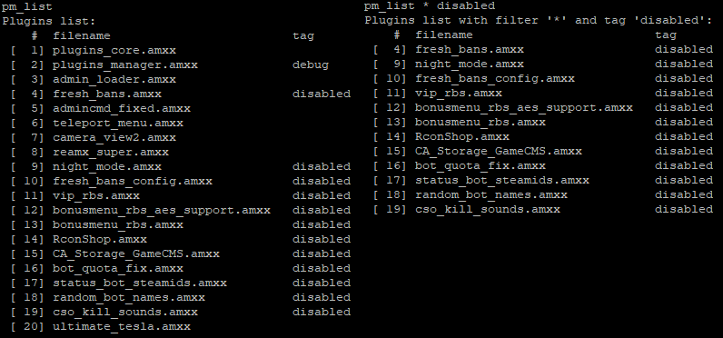 - все квары и команды для удобства настраиваются в автоматически создаваемом конфигурационном файле 'addons/amxmodx/configs/plugins_manager.cfg'