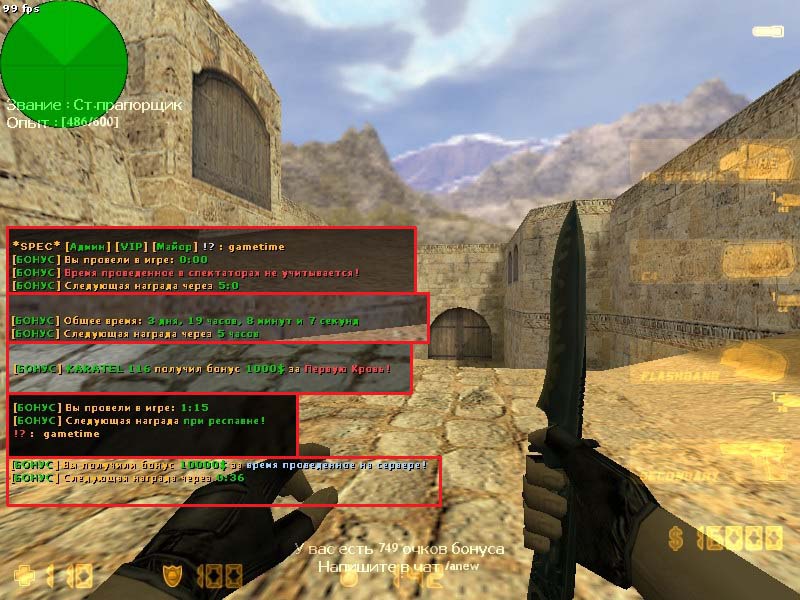 - Бонус за общее время проведенное на сервере. Для этого нужен плагин CsStats MySQL, чтобы из него брать общее время на сервере