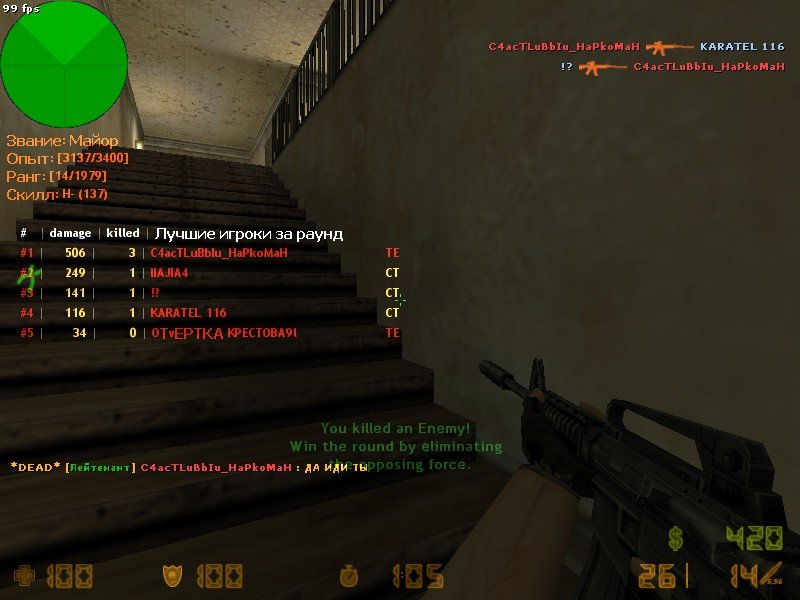 - В конце раунда показывает топ игроков по урону или фрагам в виде меню. Смотрите скриншоты.