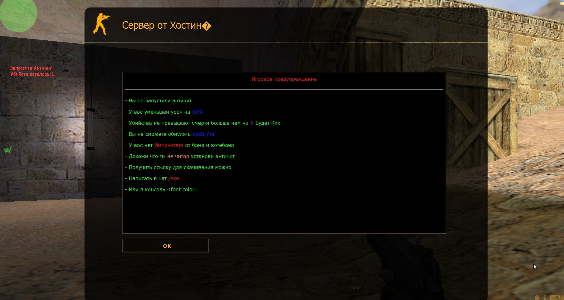 Плагин позволяет кикать игроков без античита, а так же устанавливать ряд игровых ограничений таких как ограничение на количество убийств, уменьшение урона и ограничение на обнуления счёта /rs
