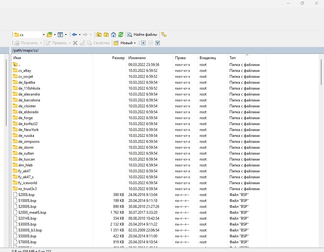 Карты в панели не хранятся, они находятся у клиента на вдс. При подключении вдс к панели на неё загружается чистая сборка сервера и небольшой набор карт (это как раз то что вы и видите в панели) Много карт я не могу на вдс загружать так как у каждой вдс разный обьём памяти, поэтому был собран небольшой набор основных карт. Вы можете через фтп индивидуально загружать, а если вы хотите именно чтобы они были в панели тогда нужно собрать карты и загрузить их на вдсЕвгений Морозов писал(а): ↑ Здравствуйте, добавьте пожалуйста в панель HOST-V карты из CS:GO