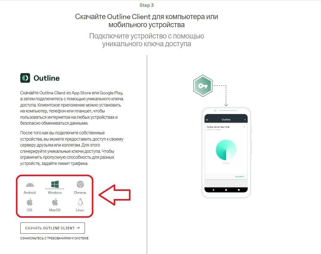 Скачиваем нужный вам клиент Outline Client