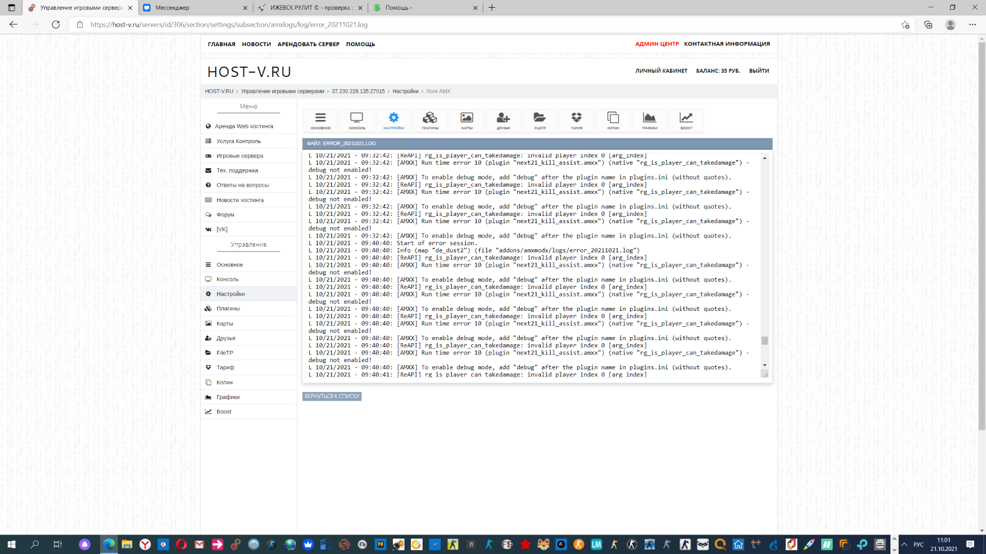 Так же нужно предворительно получить развёрнутый лог ошибки. Вам нужно в plugins.ini включить плагин и рядом с ним прописать debug тогда лог будет более развёрнутый.