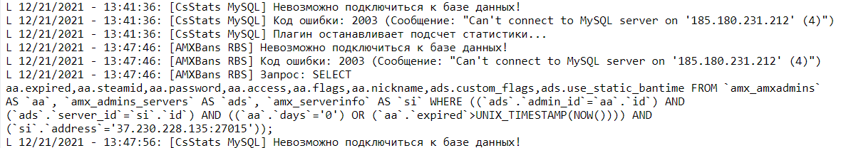 dityatko писал(а): Прпала статистика.Нет поключения к БД.
