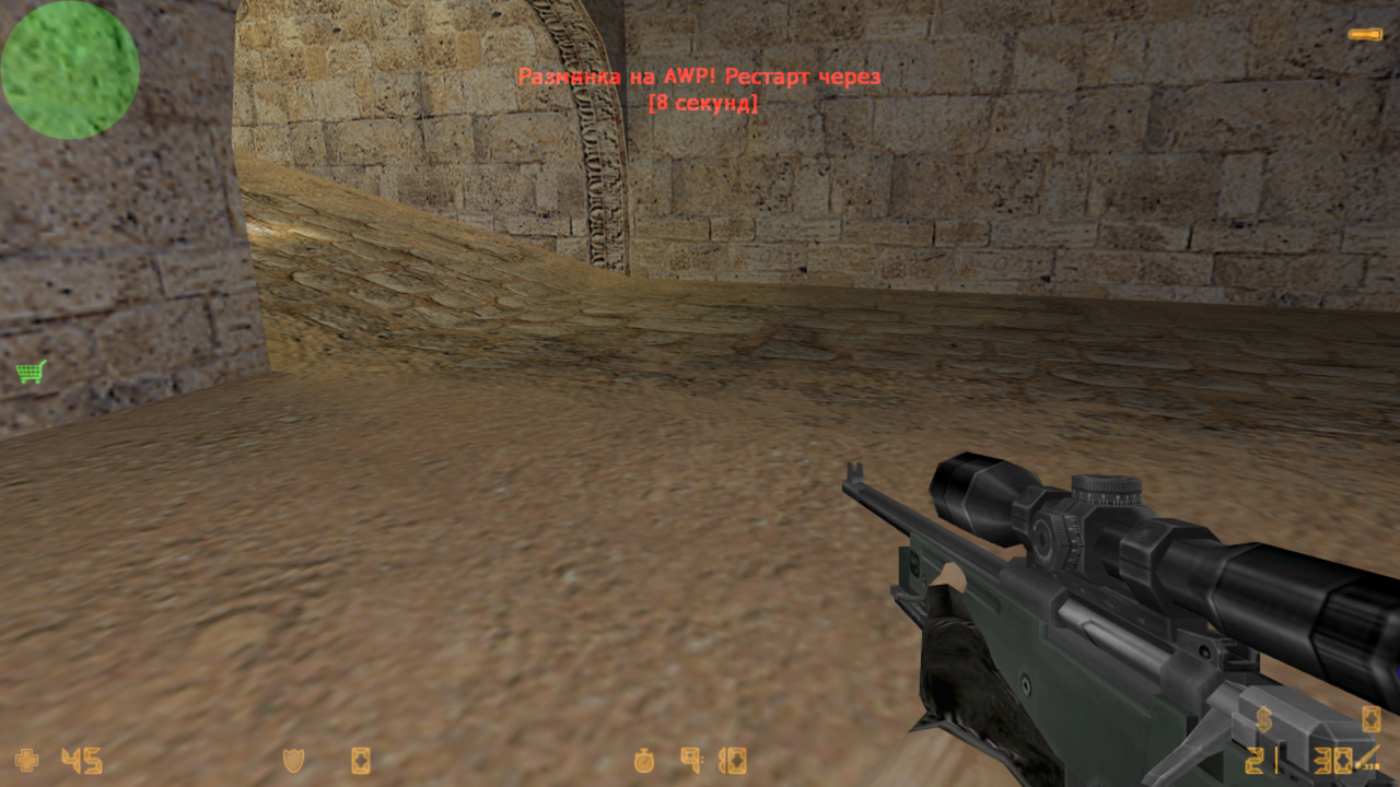 • Отсчет времени. Сверху в hud или dhud сообщение показывает, через сколько закончится разминка и на каком оружии играется разминка
