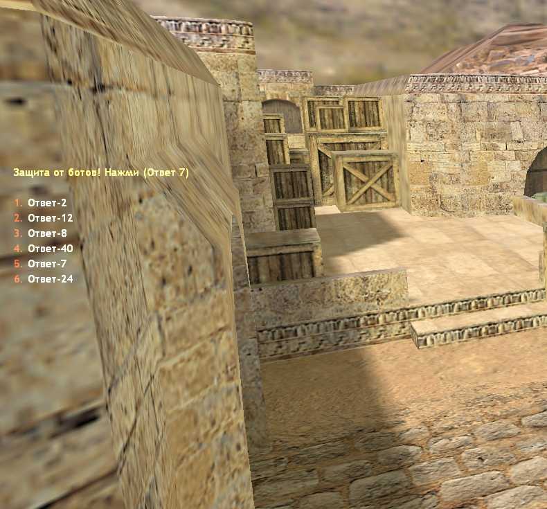 Чтобы зайти на сервер нужно ответить на вопрос, если ответ не верный игрока кикнет с сервера с надписью что он не прошёл проверку.