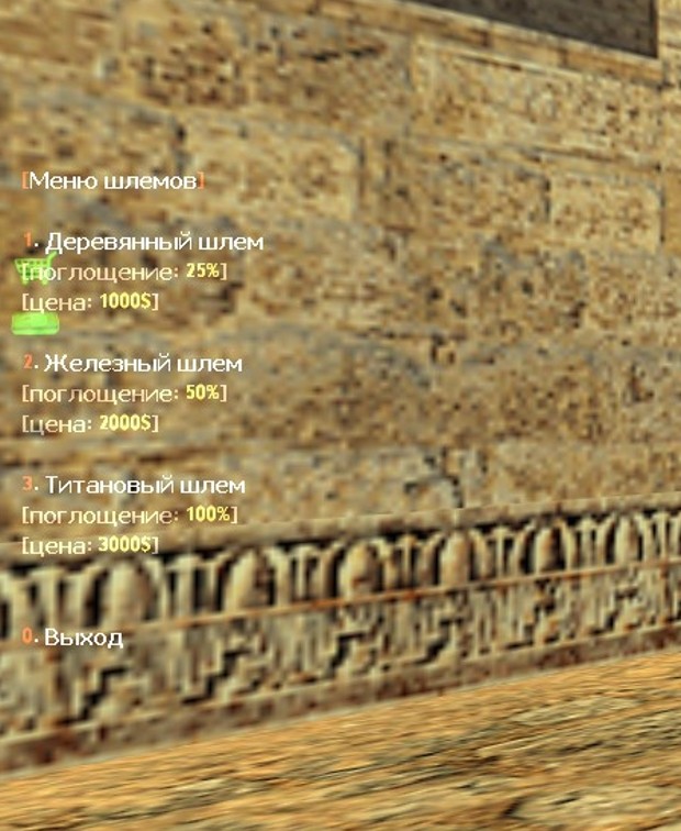 В комплекте два плагина, один шлема второй бронежилет. Суть плагинов заключается в том, что любой игрок или только админ (Настройки в конфиге) Может купить себе усиленную экипировку шлем или броню. Усиленная экипировка позволяет поглощать первый входящий урон либо общее количество урона (настраивается в конфиге) после чего пропадает. Плагин умеет работать с плагином BonusMenu RBS что позволяет сделать покупку защиты за поинты, а так же с плагином VIP RBS Подробнее смотрите на скриншотах и функции в конфиге.
